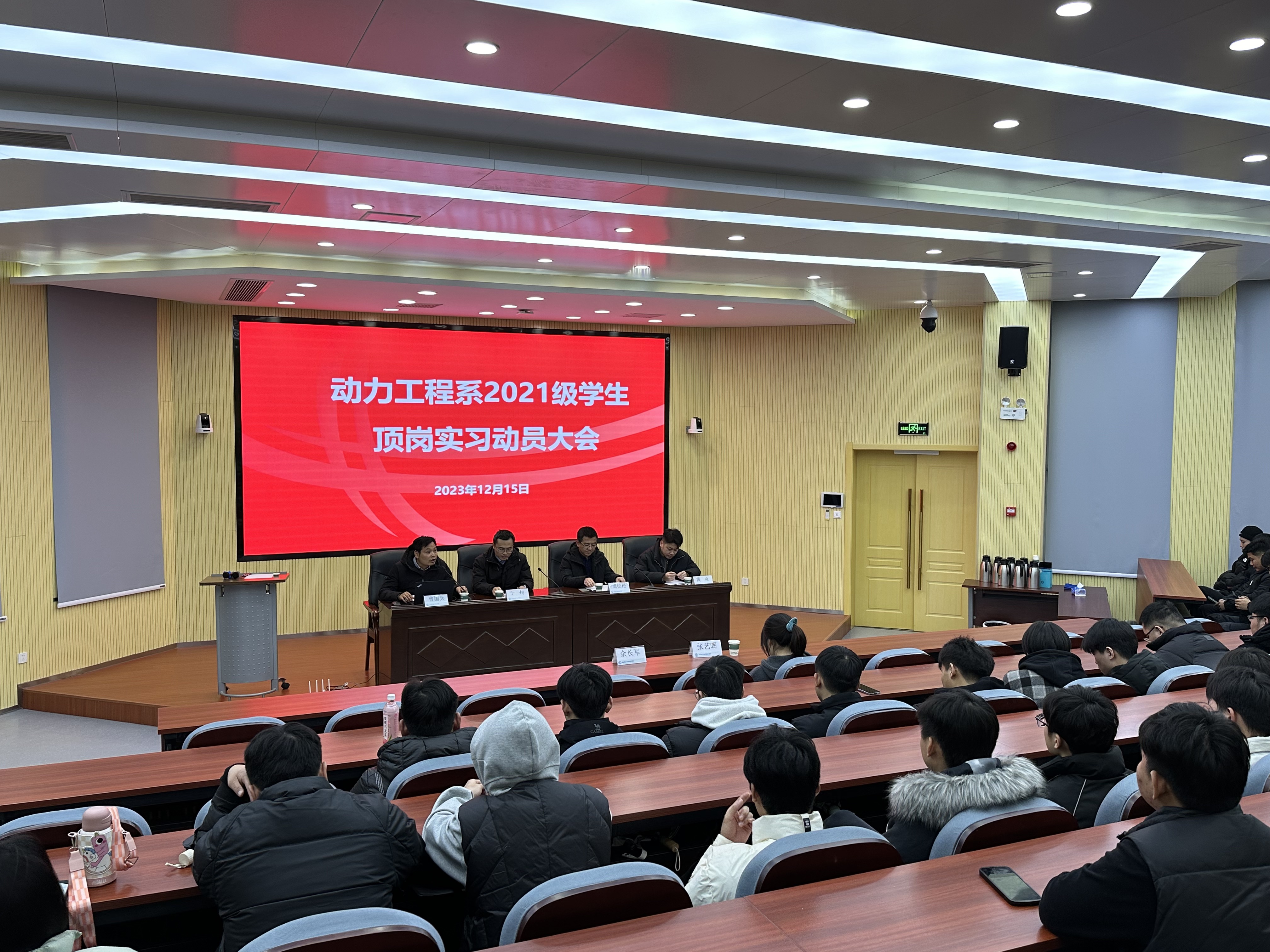 根据专业人才培养方案,为切实加强毕业生顶岗实习期间的就业服务、安全教育和管理等工作,顺利完成毕业班顶岗实习工作,2023年12月15日下午,动力工程系在100报告厅举行了毕业班学生顶岗实习动员大会,动力系相关负责人、辅导员和2021级所有毕业生参加了此次大会。