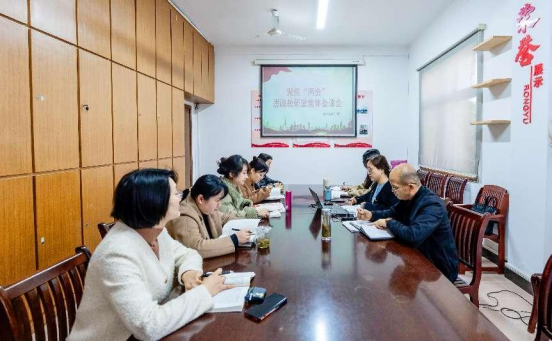 会上,思政教研室主任李婷结合“两会”政府工作报告、会议精神和时事热点,从如何有机融入思政课程角度梳理了重点内容,号召全体思政教师深刻把握“两会”的丰富内涵与实践要求。叶楠、周文蓉、宋航等老师分别就学习贯彻全国“两会”精神的体会和融入思政课教学情况的思考进行分享,重点围绕新质生产力、科技创新、高质量发展、农业农村现代化等内容及如何有效融入思政课堂进行交流研讨。