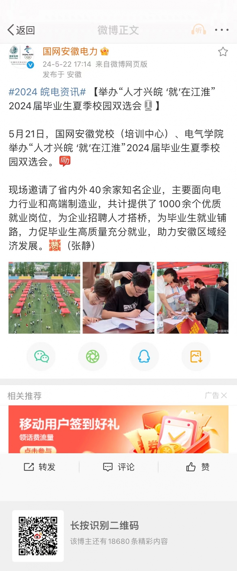 【公司微博】学院举办“人才兴皖,‘就’在江淮”2024届夏季校园双选会