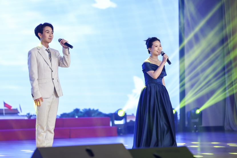 教师独唱《灯火里的中国》、校友演唱的原创歌曲《简单人生》、电力系学生原创歌曲《电力之光》等唱出了国家发展欣欣向荣、人民生活幸福甜美、新时代电力青年阳光向上的美好生活;快板《夸夸电院的好专业》则以俏皮的口吻讲述了电院人在“充电提能”中练就“真本领”的励志故事;退休教师们表演的旗袍秀《徽风皖韵》传递了银发芳华的魅力和对生活的热爱;军旅拳表演《橄榄绿的人生》展现了新时代军人的飒爽风姿;古筝书法《书香琴韵话中国》用浓浓的中国风表达了对中华民族优秀传统文化的传承和发扬;舞蹈《如愿》、朗诵《红色赞歌》热情讴歌了老一辈英烈们不怕牺牲、为国捐躯的爱国情怀,表达了对祖国繁荣昌盛的热切期盼。