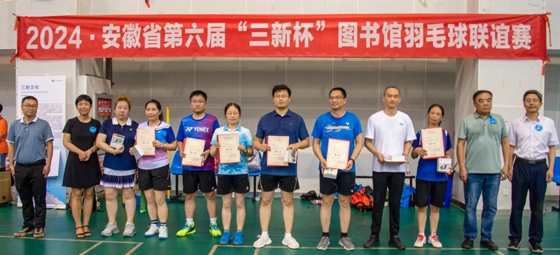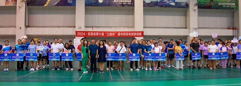 6月29日,安徽省第六届“三新杯”图书馆羽毛球联谊赛在安徽建筑大学体育馆拉开帷幕,省内各图书馆羽毛球爱好者齐聚一堂,共襄盛会。本次联谊赛由安徽省高等学校图书情报工作委员会主办,安徽建筑大学图书馆承办,湖北三新文化传媒有限公司协办,共有24所高校图书馆及公共图书馆120余位馆员和教师参赛,人数为历届之最。