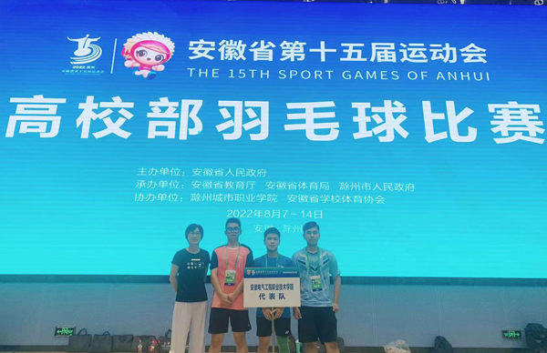 8月5日至13日,安徽省第十五届运动会高校部羽毛球比赛在滁州城市职业学院隆重举行,学院派出3名队员组成的代表队参加男子单打、男子双打项目的角逐。
