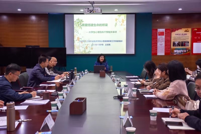 为切实提高学院学工人员心理危机事件处理能力,深入开展的大学生心理健康教育工作,11月9日下午,学院特邀安徽警官职业学院王世民教授在图书馆二楼会议室作“用爱架起生命的桥梁——大学生心理危机干预”专题培训讲座。分管院长、学生处处长、心理健康教育中心主任、各系党总支书记、辅导员,以及学院专兼职心理教师参加培训。