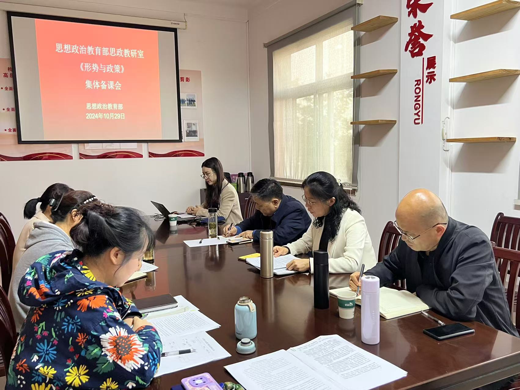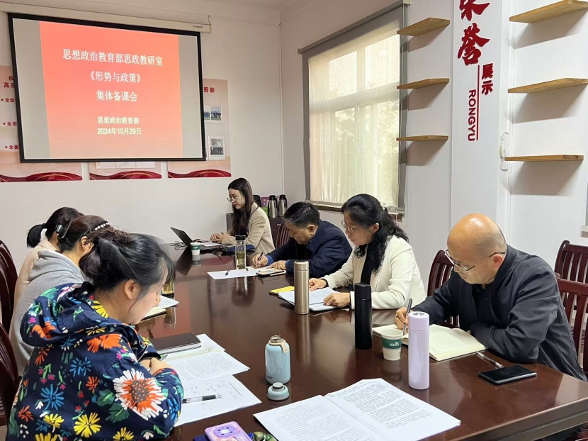 10月29日下午,思政部思政教研室全体教师在四楼会议室开展《形势与政策》集体备课会,会议由部门负责人彭慧主持,朱飙书记应邀参会。本次会议主题是围绕“新质生产力”进行集体研讨。