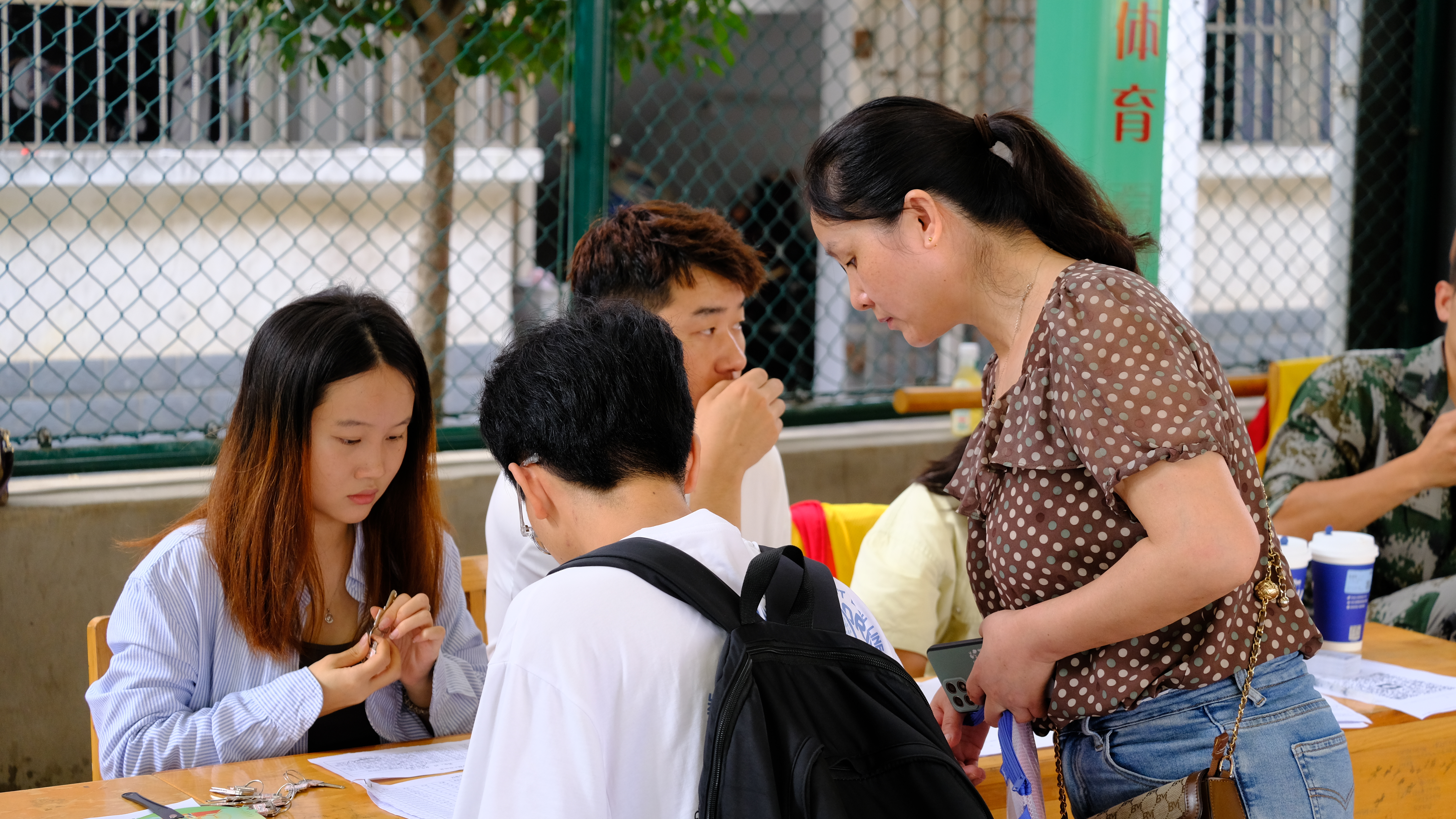 为维护迎新现场秩序,创造和谐的迎新环境,此次特别安排了系部的退伍军人为迎新活动保驾护航,他们穿着整齐、举止醒目,有序地在校园里进行巡逻,为有需要的同学答疑解惑,提供帮助,得到了同学们的一致认可,起到了模范带头作用,成为了此次迎新活动中一道亮丽的风景线。