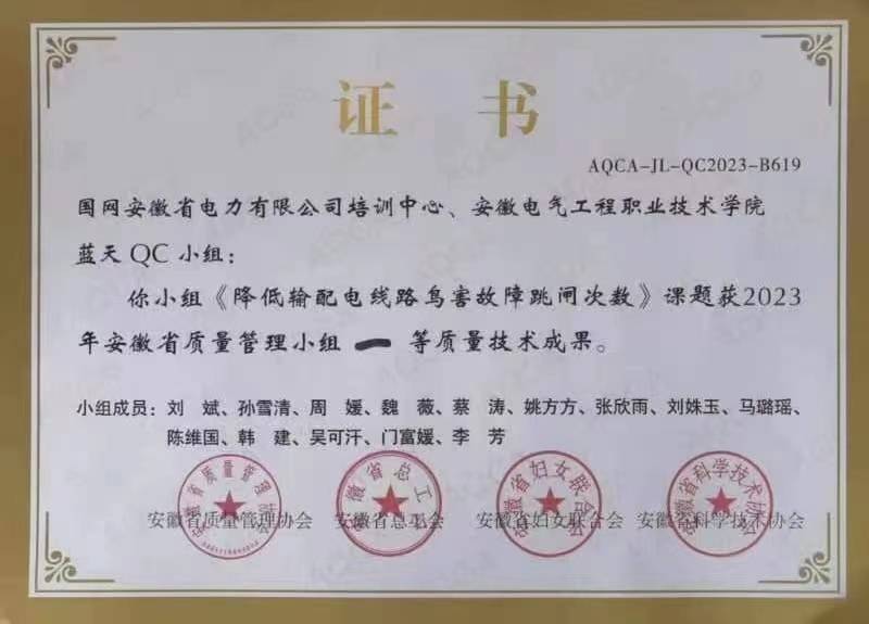 8月11日,2023年安徽省质量管理小组活动交流会暨成果发表赛落幕,现场发布来自各行业549个项目,电力系统参赛100项,其中问题解决型课题350项,创新型课题199项,蓝天QC小组以86.15分的高分斩获问题解决型课题一等奖。